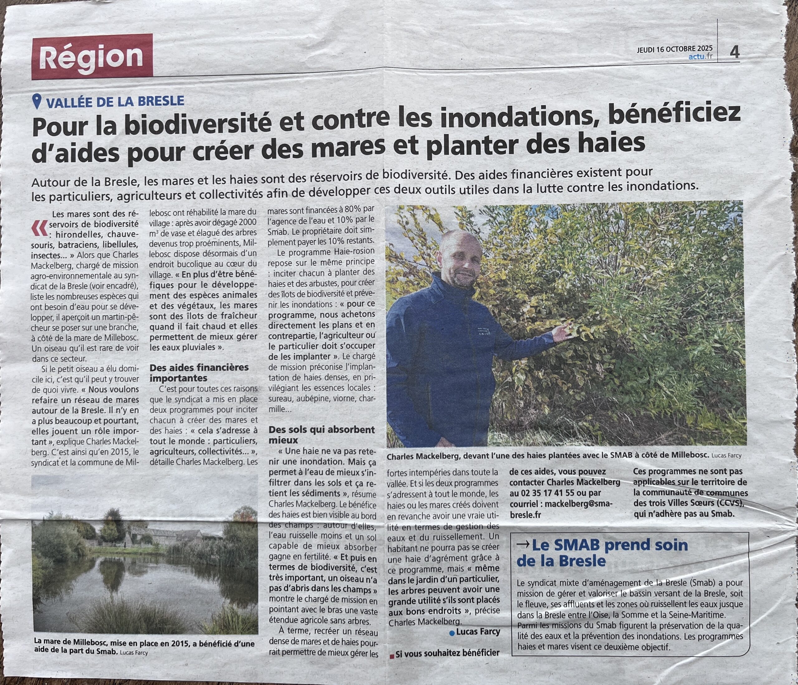 Biodiversité « Criel-sur-Mer. Un livre pour tout connaître sur les espèces qui peuplent les bords de l’Yères » L’Informateur 27 mars 2025 : Un bel exemple des actions intéressantes du Syndicat mixte du bassin versant de l’Yères et de la côte.