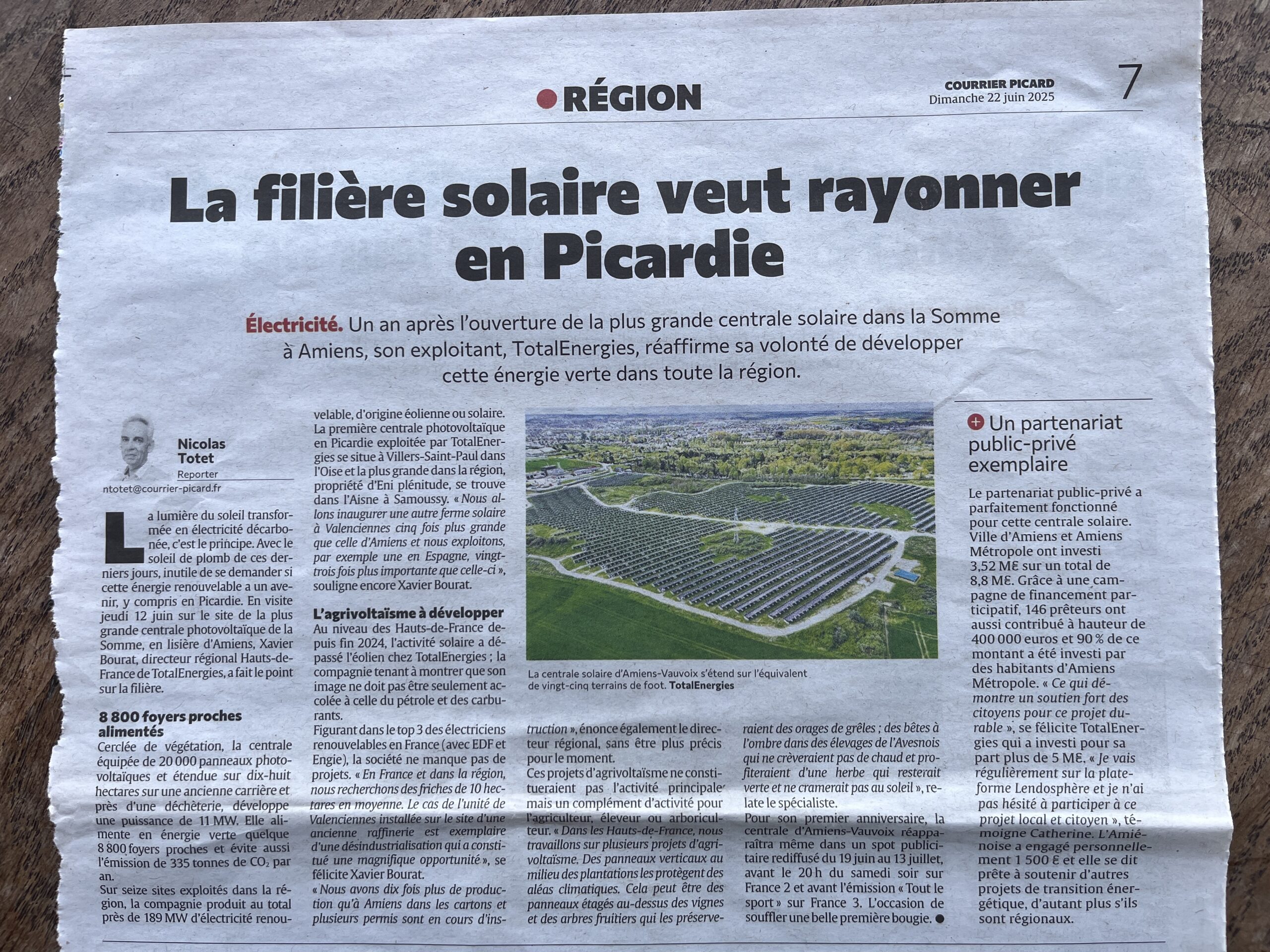 Énergie La filière solaire veut rayonner en Picardie. Courrier Picard 22 juin 2025