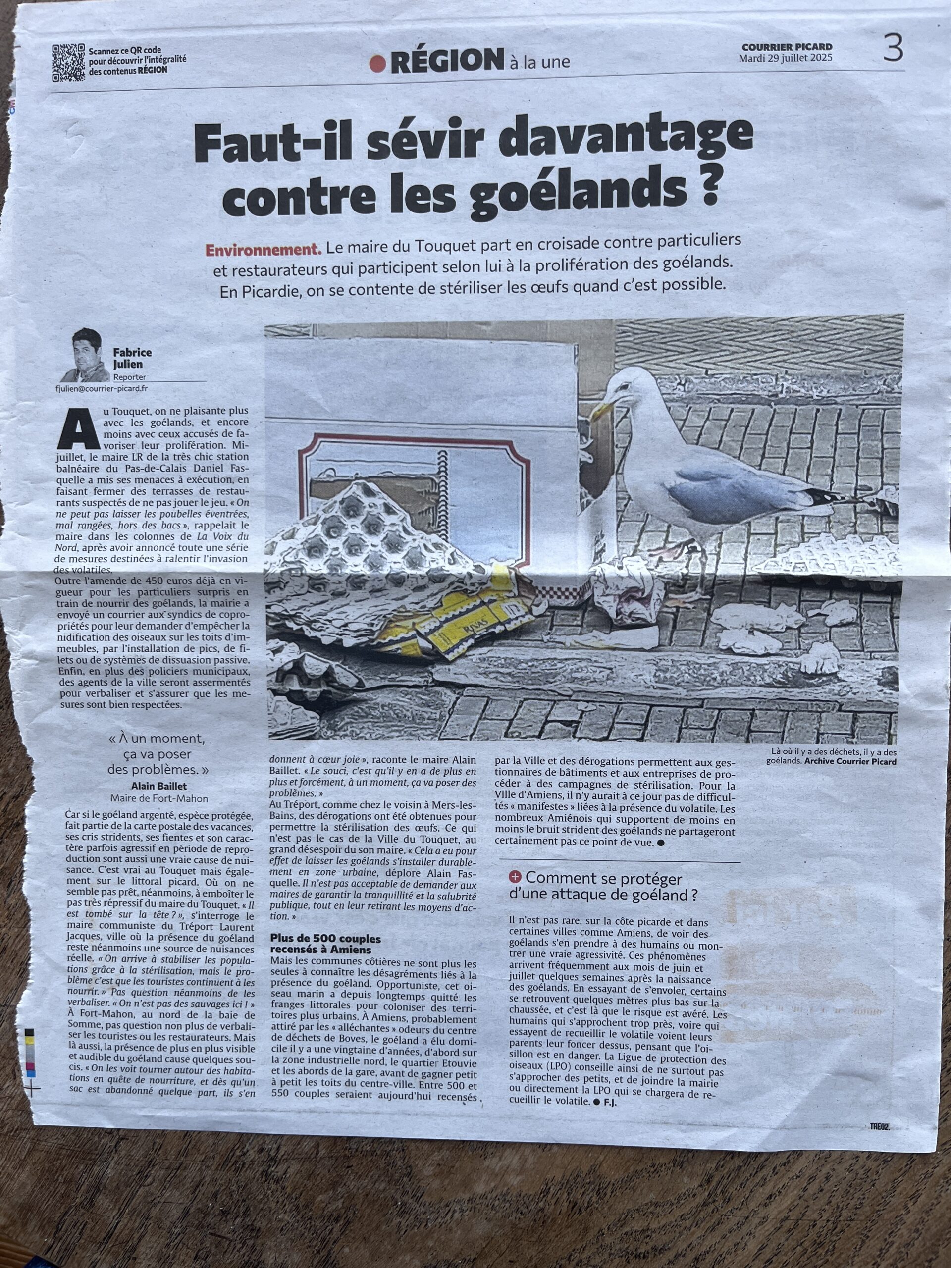 Biodiversité Faut-il sévir davantage contre les goélands ? Courrier Picard 29 juillet 2025