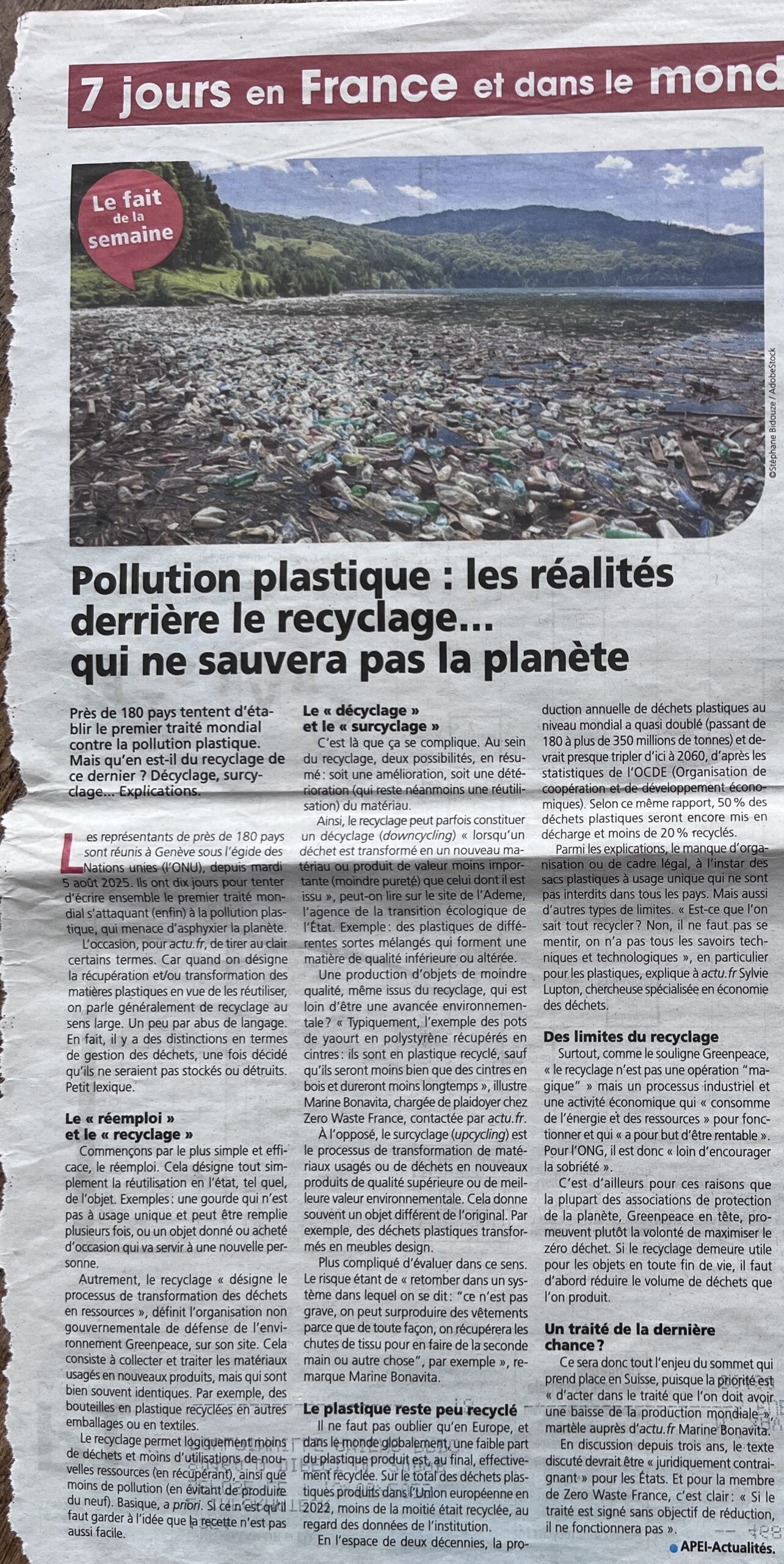 Pollution plastique « Les grands fleuves européens envahis par les microplastiques » Le Courrier Picard 8 avril 2025 : On les retrouve dans la mer et sur le littoral.
